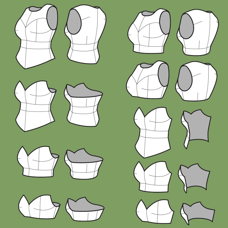 PDF patterns to create a foam torso armor (9 shapes)